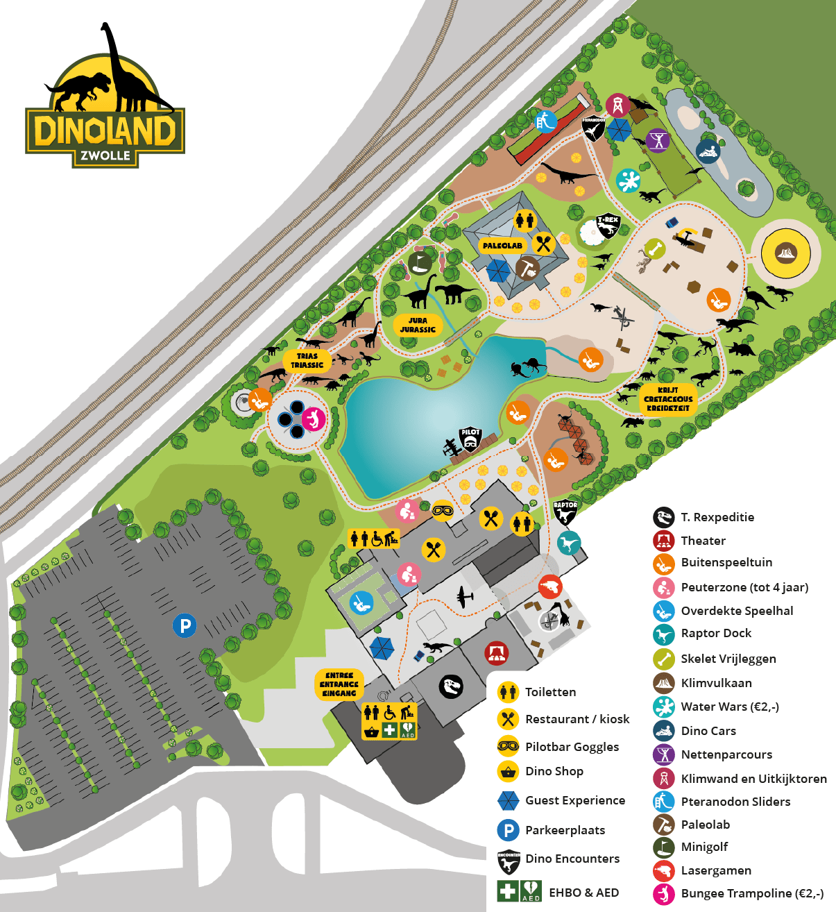 In Dinoland ga je terug naar de tijd van de dinosaurussen, miljoenen jaren geleden. Je maakt er kennis met meer dan 100 soorten uit het Trias, Jura en Krijt tijdperk en kunt er van alles over ze leren.